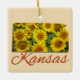 Kansas is named after the Kansa Native American tribe which originally inhabited the area. Though the official nickname is "The Sunflower State", Kansas is also called "The Free State" and "The Wheat State". By 2015, Kansas was one of the most productive agricultural states in the country, producing high yields of wheat, corn, sorghum and soybeans. The state's most famous appearance in literature was as the home of Dorothy Gale, the main character in the novel "The Wonderful Wizard of Oz". When Dorothy said, "There's no place like home," she was referring to Kansas. Laura Ingalls Wilder's "Little House on the Prairie", published in 1935, is another well-known tale about Kansas. Even Superman was said to hail from Kansas . . . from the fictitious town of Smallville. Pizza Hut restaurants opened their first location in Wichita, Kansas. The glorious sunflower is the official state flower, and it's as much a crop as an ornamental. Sunflowers are native to the Americas. Historically, they have been used for medicine, dye, food, and oil. At the bud stage, sunflowers exhibit a unique trait called heliotropism, with which the bud of the sunflower faces the sun at all times throughout the day, starting the day facing east and ending it facing west. Not all sunflower petals are yellow. There are more than 60 varieties of sunflowers that live around the world—some of these varieties have striped petals. Some sunflowers also have different interior shades. This spectacular design pays homage to our beautiful 34th state as well as the amazing flower it honors. An outline of the state is filled with lovely sunflowers. This is paired with the pumpkin orange "Kansas" and, with a nod to its fertile soil, anchored with a deep, earthy "The Sunflower State" on this stunning ornament. Whether you are decorating a holiday tree with memories of your travels or paying homage to our 34th state, this marvelous ornament is an excellent choice.