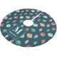 Ornament Pattern on Blue with Monogram Name Brushed Polyester Tree Skirt
