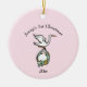 Pink side has a stork carrying a baby on pink with the babies name and 1st Christmas, The other side is blue for the baby boy with a stork carrying a baby along with babies name and 1st Christmas.