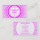 A business card template with an original ornamented design. A circular panel on the front for company name and business type decorated with circular text symbols surrounded by a decorative design. The reverse of the card retains the outer part of the design but with a larger area in the middle for name, title, and other contact details. Suitable for a variety of different businesses, could also be adapted for use as a gift card voucher or token. Having a style somewhat reminiscent of banknotes or toy money.