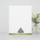Elegant black ornamental tree with a gold band with thin black stripes is perfect for the annual Christmas newsletter.