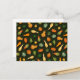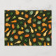 This postcard has small gourds in shades of green, yellow, and orange on a dark green background.