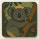 This vibrant wildlife art print features a stylised koala perched calmly at the heart of a radiant, mandala-like composition. Framed by a circular sunburst and surrounded by lush leaves, flowers, and geometric patterns in warm greens, oranges, and yellows, the koala’s expressive gaze and textured fur bring a sense of quiet strength and natural harmony.