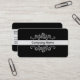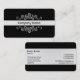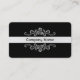 A stylish attractive business/profile card template decorated on the front with ornamental floral elements and a silver colour centre band all with a 3d embossed effect. Company Name on the front with name and contact details on the back placed within a wider silver banded area. Customisable and suitable for may types of business.