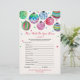 This ornaments "how well do you know the bride" game is perfect for a bridal shower in December. The front of the game card features "how well do you know the bride", and the back of the card features "what's in your purse". The design features red curly script text with ornaments dangling at the top of the game card, and colourful red green and blue confetti falling down towards the text. Personalise the front of the card with the name of the bride and bridal shower date.