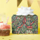 A luxurious paper in subtle hues printed with large ornaments decorated with holly, in a design with satiny red and white thin ribbons and bows foliage of the Christmas tree with powdery white snow. In most instances I use a matte finish for wrapping paper, but in this case glossy paper has stronger colour. Seamless image.