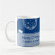 Merry Christmas Grandma and Grandpa custom photo mug in stylish blue and white snowflake and decorations pattern with customisable text and photo, perfect as a holiday gift.