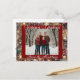 This design features a placeholder for your photo trimmed with a ruby red frame on a sparkling ornament background. The back has room for your holiday's message. To change details, click «Personalise». To move the text or change the text size, font, or colour click «Click to customise further». You can also remove the Zazzle logo on the back of the card by checking the box at the bottom of editing options.