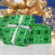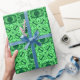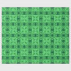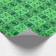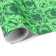 Wrapping paper in an ornate, geometric arabesque pattern in shades of dark emerald and mint green