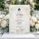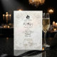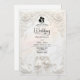 Set a tone of timeless luxury for your black-tie union with this Neoclassical design, capturing the essence of Old World romance and museum-quality art.This design features a sophisticated trompe l'oeil visualization of a sculpted limestone or marble frieze. The artwork mimics the look of a bas-relief carving in shades of warm ivory, cream, and beige, creating a realistic play of light and shadow without actual physical texture. The ornate frame includes 3D-style renderings of acanthus leaves, blooming white roses, graceful swans, and a central cameo silhouette of a bride and groom, overseen by an angel figure playing the violin. The typography contrasts sharply in formal black serif and elegant calligraphy.This is a flat printed image with a faux sculpture effect, not actual raised material or stone.