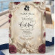 Announce your formal union with this classical baroque design. A romantic choice for fairytale church nuptials featuring deep red blooms and sculpted art.This design features a printed faux 3D bas-relief effect resembling sculpted stone architectural molding. A cream and ivory marble background sets the stage for deep burgundy and white roses entwined with a laurel wreath. A cherub angel plays the violin near a bride and groom silhouette, all framed by elegant blackletter and calligraphy scripts.This is a flat printed image with a stone effect, not actual raised material.