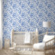 Ornate Blue French Toile Roses Floral Wallpaper
