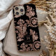 This phone case features an ornate vintage pattern of rose gold faux foil leaves and flowers on a black background. Personalise it with your initial and name in serif font, framed by a black and rose gold square.
