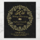 Wine bottle labels. 50th wedding anniversary celebration . A black damask pattern background. Layered over top is an ornate faux gold circle, digital image with fancy fleur-de-lis. Personalised text inside.