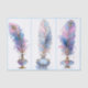 A graceful trio of ornate inkwells, each crowned with a luxurious quill feather. The feathers shimmer with gold highlights, jeweled embellishments, and delicate detailing reminiscent of fine Victorian craftsmanship. Each inkwell is uniquely shaped, decorated with gemstones, and finished in antique gold, creating an enchanting balance of artistry and elegance. The overall look evokes the charm of fantasy calligraphy and Art Nouveau design, celebrating the beauty of writing as an art form. Artwork similar to a detailed watercolor and ink illustration with metallic gold accents……COLOR COMBINATIONS: Lilac, rose pink, sky blue, turquoise, antique gold…..PERFECT FOR: Elegant decoupage, mixed media journals, writing themed crafts, stationery boxes, book covers, romantic or fantasy-inspired décor. Complements other vintage, literary, or pastel themed papers beautifully...…... 🖤 NOTE 1. This design is available in two options: Left and Right. You can find them in the Collection shown below. If they don’t appear there, try searching for their unique identifiers: EQ2L for the Left design and EQ2R for the Right version….🖤 NOTE 2. The 18 lb tissue is a great choice if you like a little extra strength—it's easier to handle, resists tearing and allows for gentle repositioning. It’s also more opaque, making it perfect for darker surfaces. The 10 lb tissue is wonderfully lightweight and flexible giving you that smooth, blended finish. It’s ideal for layering on furniture or smaller projects so treat it gently and it will reward you with stunning results!.….🖤 NOTE 3. All items with this particular design share my unique identifying “Letter/s Number/s” label in the title for easy searching. …..🖤