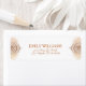 Elegant rose gold ornate lace geometric design, white background, customisable return label design.