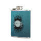 Deeply shaded and embossed blue damask background with centre ornately engraved black medallion with engraved rose embellishment for personalisation.