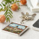 Depiction of a European architectural landmark surrounded by city buildings, adorned with an ornate decorative frame, emphasising urban elegance and artistic style.