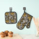 Ornate floral pattern with large gold flowers oven mitt & pot holder set