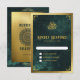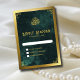 The back of the RSVP card continues the theme of tradition and royalty. A thick emerald green border surrounds a stunning gold gradient centerpiece, adding a touch of elegance. The bride and groom's names are displayed prominently in bold fonts, along with the wedding date, ensuring all the necessary information is readily available.