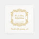 Beautiful wedding paper napkins feature an elegant vintage ornate gold filigree frame with 4 lines of customisable text on white background - fill in with wedding couple's details.