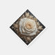 An intricate decorative floral artwork featuring a central ivory rose surrounded by ornate golden patterns on a dark background, symbolising elegance, luxury, and artistry.