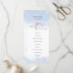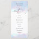 An elegant design with the main headings set in an unusual script with an ornate leafy embellishment, and you can easily personalise the rest of the text on the front and back to your own details. Summery pastel Watercolors in shades of pink, blue and lilac partially cover from the top and bottom edges on both sides.