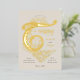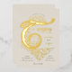 This elegant wedding invitation features a large, ornate gold foil “T,” which serves as the leading letter for the phrase “The Wedding of,” creating a grand and sophisticated introduction to the wedding details. The intricate gold foil scrollwork surrounding the text adds a luxurious feel to the muted sage green background, while the classic serif typography enhances the formal aesthetic. The back of the card continues the minimalist elegance with a delicate monogram-style design. Ideal for formal and upscale wedding celebrations, this invitation combines timeless design elements with contemporary sophistication. The harmonious blend of sage green, gold foil, and cream tones makes it perfect for couples seeking a refined and stylish invitation.