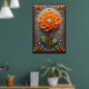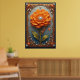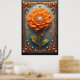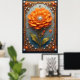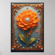 Ornate Orange Flower Artwork in Gold Frame Poster