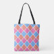 Ornately patterned diamond checked tote bag.