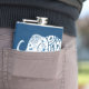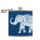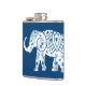 Ethnic art hip flask with decorative henna tattoo style elephant on dark blue background. Option to customise background colour.