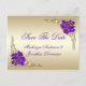 Ornate Purple Roses Gold Leaves Save The Date Announcement Postcard