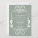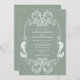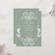 Ornate Sage Green Floral Line Art Monogram Wedding Invitation