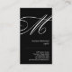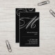 The letter "M" rendered in an ornate script bleeds off this black business card making a stylish, versatile look for a hairdresser, image consultant, life coach, or stylist among many others. Don't like the black background? Choose the "Customise It" button option and change the background colour as desired. Available in alternate monograms.