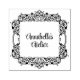 Customisable rubber stamp features ornate Square frame silhouette with modern script text. Use for product merchandising, wedding favours and more!