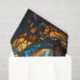 A haunting image of a beautiful butterfly with ornate scrollwork all around and a gorgeous landscape backdrop.