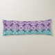 Add this beautiful body pillow to your purple and teal bedroom decor. Features a white damask pattern on a teal and purple ombre background.