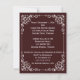 This design features an elegant ornate vintage border and a dark red burgundy background, reminiscent of velour. The front of the invitation has a poem that contains details about the rehearsal dinner. The back of the invitation has details of the rehearsal and if there is a dinner that follows afterward.
