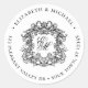 These elegant classic black and white wedding round return address labels feature an ornate vintage style monogram crest with fancy script calligraphy for the initials of the bride and groom. Find matching products in the collection, or message me through Zazzle Chat for more products and design tweaks.