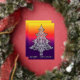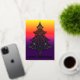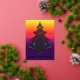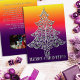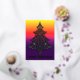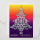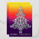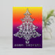 The front of this luxurious Real Silver Foil Christmas Card features an exquisite stylized Christmas tree rendered in a rich, ornamental filigree pattern. Every swirl, curve, and leaf is brought to life with genuine silver foil, creating a luminous interplay of light that catches the eye from every angle. The design stands against a happy yellow to purple gradient background, a color transition that evokes joy and festive celebrations.