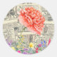 Orrange Flowers, Watercolor, Old Newspapers Classic Round Sticker