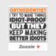 Funny Orthodontist Sayings "Orthodontist I Try To Make Things Idiot Proof But They Keep Making Better Idiots". Grab this Funny Orthodontist design as a funny gifts for an awesome mum, dad or friend.