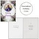 Elegant, decorative frame with beautiful pink flowers and scrolls with an icon of Jesus Christ, Pantocrator birthday blessings card. Customise with all of your personal details and preferences.