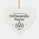 First Christmas as an orthopaedic nurse heart ornament for a new job in nursing. The text can be changed to orthopaedic. Elegant porcelain ceramic holiday ornaments in white with black lettering. Featuring Christmas trees and stars.