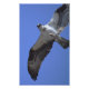 An Osprey proudly showing off his catch as he flies overhead.