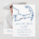Set the tone for your Osterville wedding with this modern navy blue Save the Date featuring an elegant map of Cape Cod on the front and a customisable photo on the back. Perfect for weddings at Oyster Harbours Club, The Wianno Club, or Armstrong-Kelley Park, this design pairs style with convenience, offering free envelope addressing. Announce your special day in effortless coastal charm! Artwork by Coastal Map Designs.