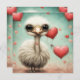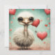 A adorable little ostrich and hearts.