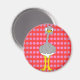 Magnet with cartoon ostrich illustration over pink polka dots background