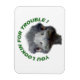 Funny face picture of a ostrich head with 'ARE YOU LOOKING FOR TROUBLE " circled around head