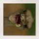 A vivid image featuring an ostrich with its beak open, showing its tongue, against a lively green-orange background. An image perfect for nature enthusiasts.